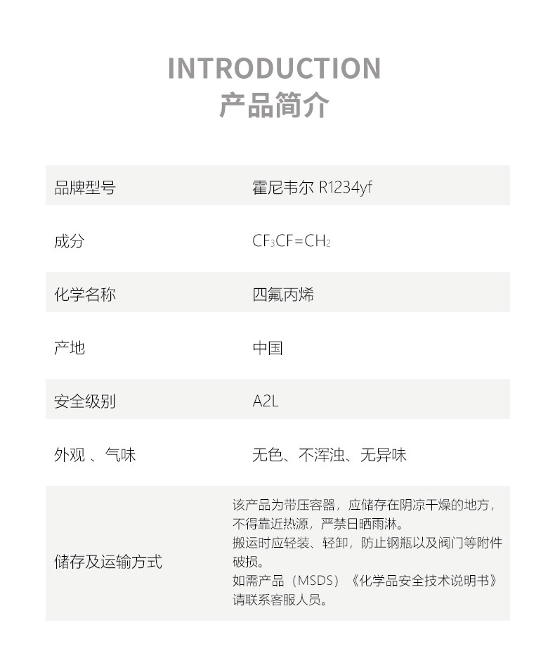 霍尼韋爾R1234yf制冷劑